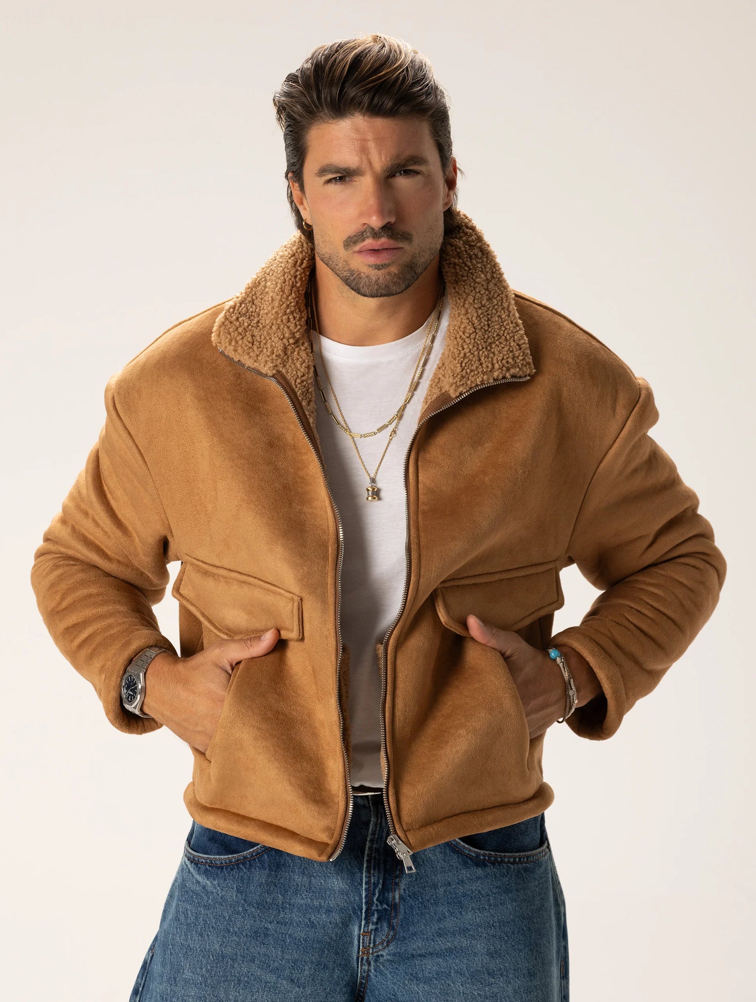 AKINORI SHEARLING JACKET IN CAMEL