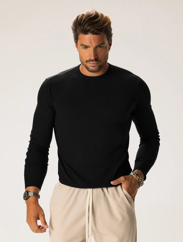 - 95% cotton, 5% spandex- Color: navy- Crew neck- Long sleeves- Jersey fabric- Basic style...