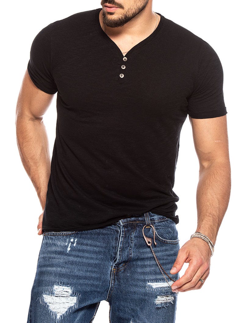 - Colour: black- 100% cotton- Henley collar- Fitted hem- Made in Italy- Slim fit- Our model wears size...