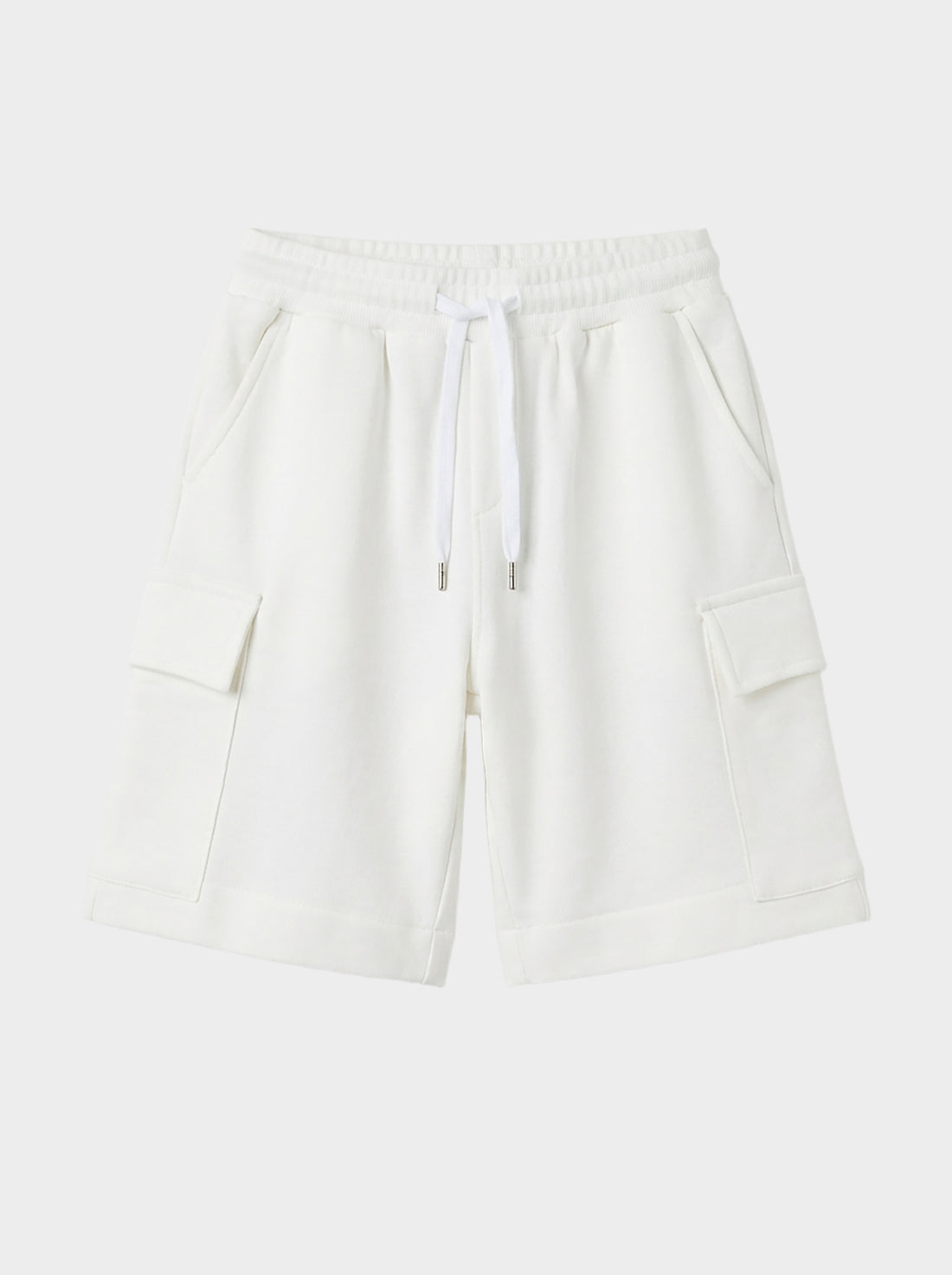 - Farbe: weiß- 100 % Baumwolle- Elastischer Bund mit Kordelzug- Schräge Taschen vorne- Doppelte Abnäher...