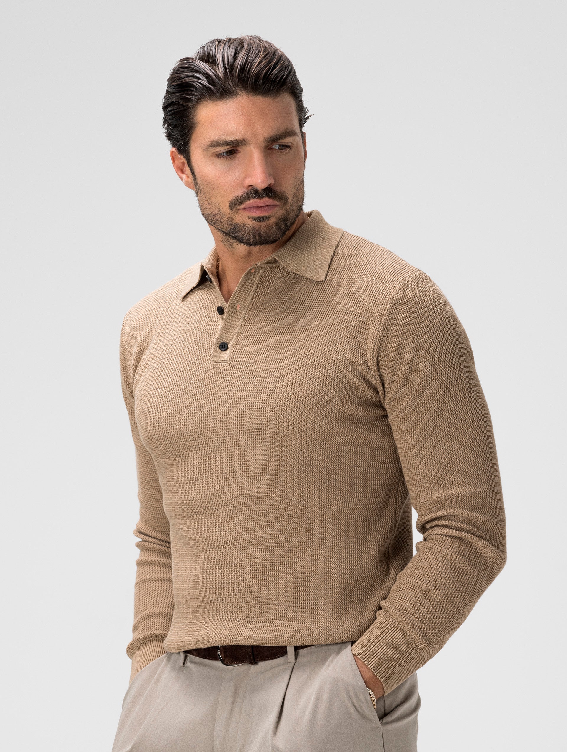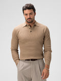 JIN LANGÄRMELIGES STRICK-POLOSHIRT IN KAMEL