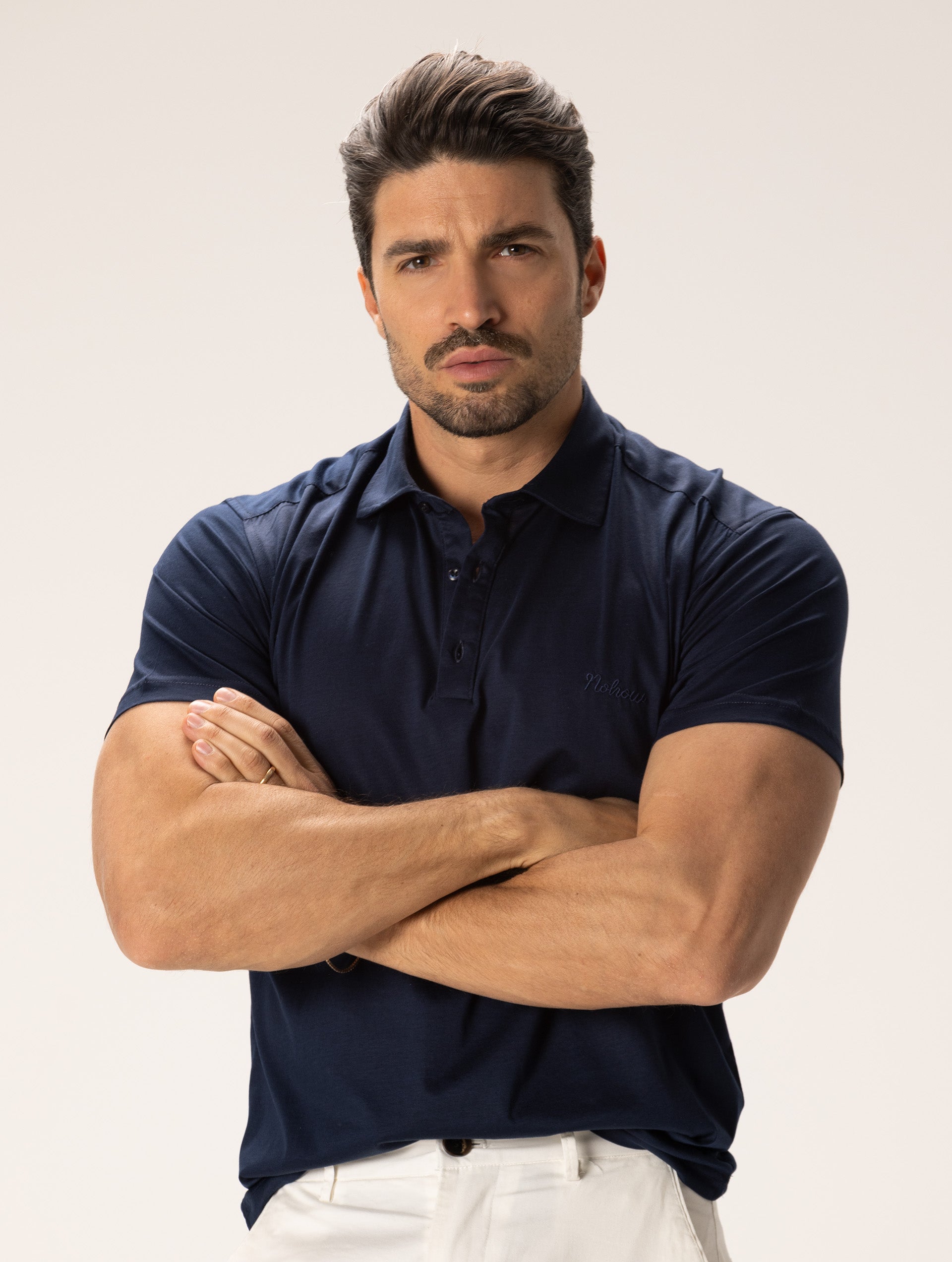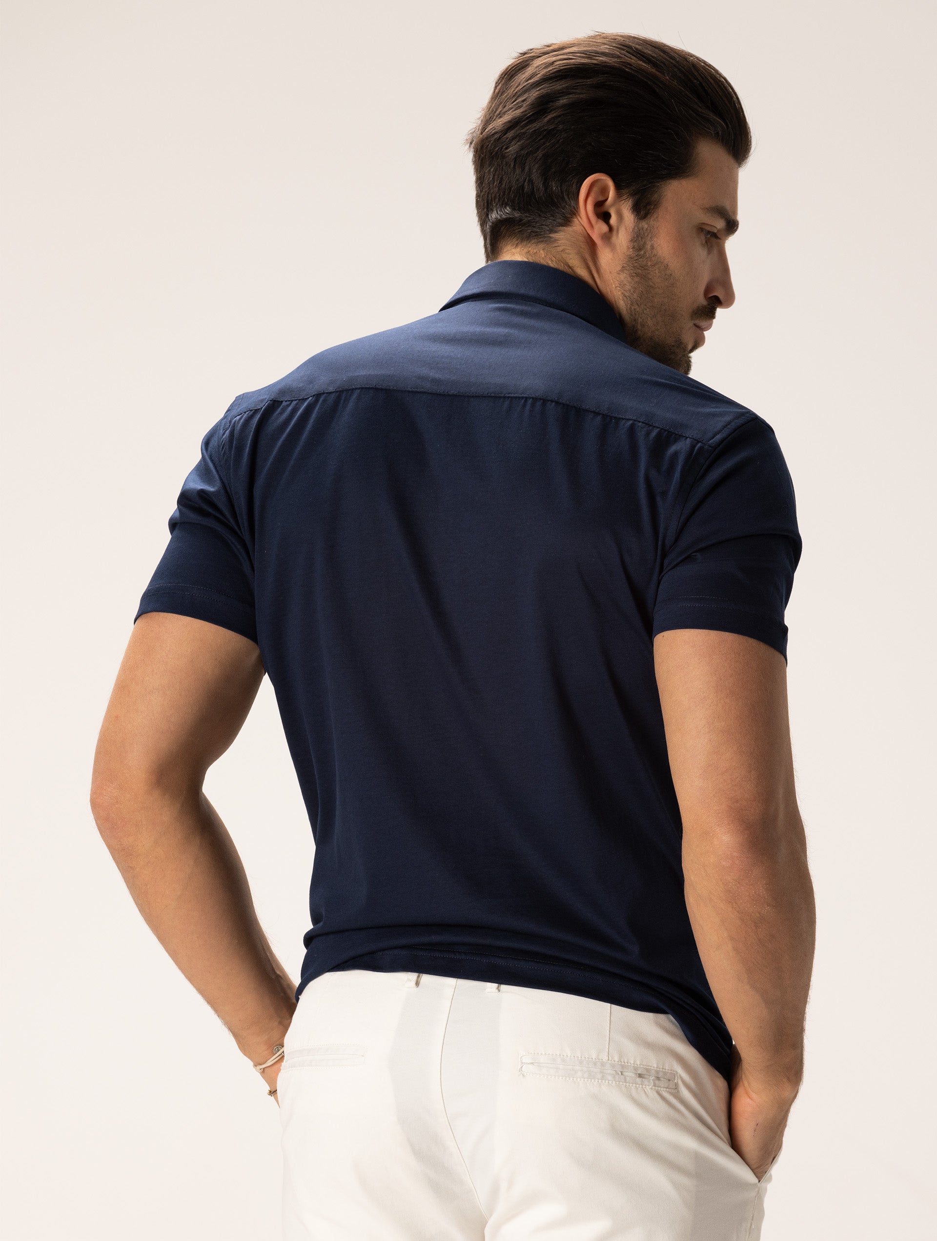 POLOSHIRT AUS SCHOTTISCHEM GARN IN MARINEBLAU