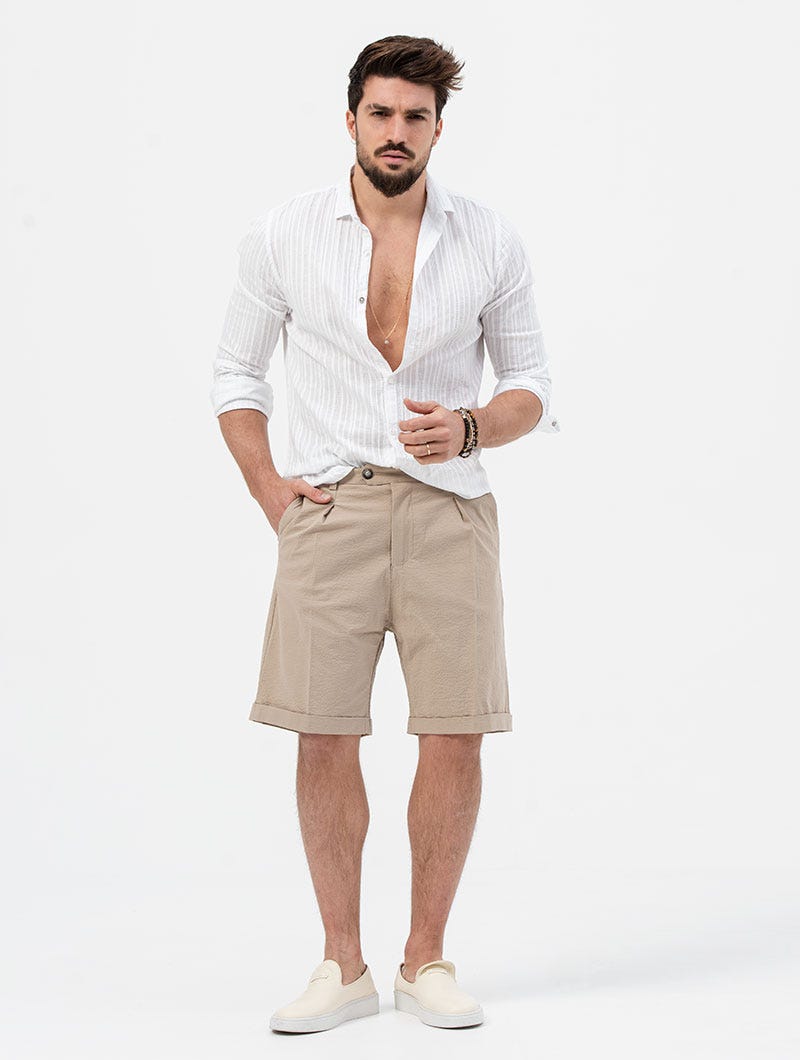 DUBAI BERMUDAS DE SEERSUCKER EN BEIGE