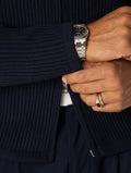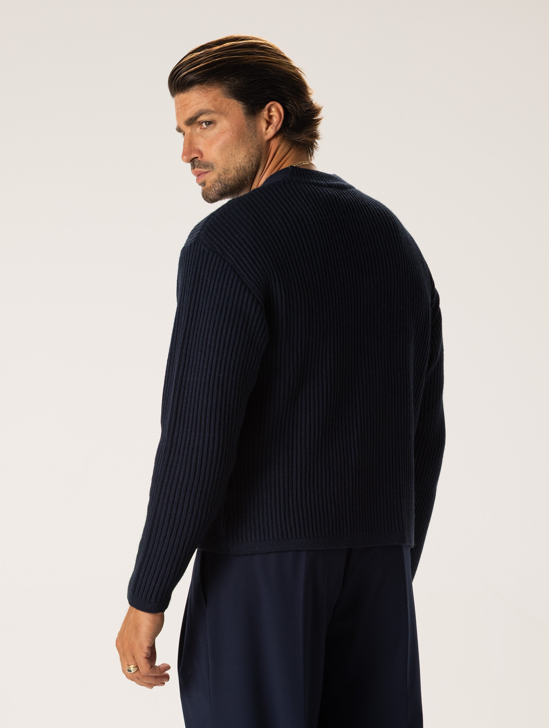 - El modelo lleva una talla L y mide 185 cm