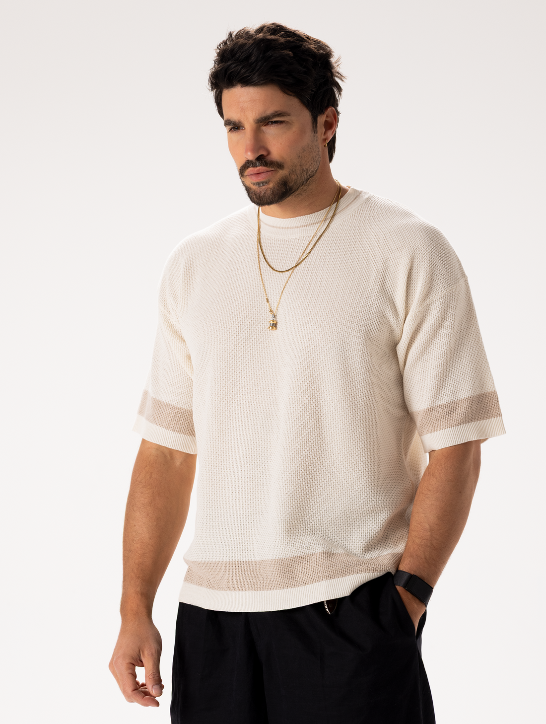 KATAI T-SHIRT EN MAILLE COULEUR CRÈME
