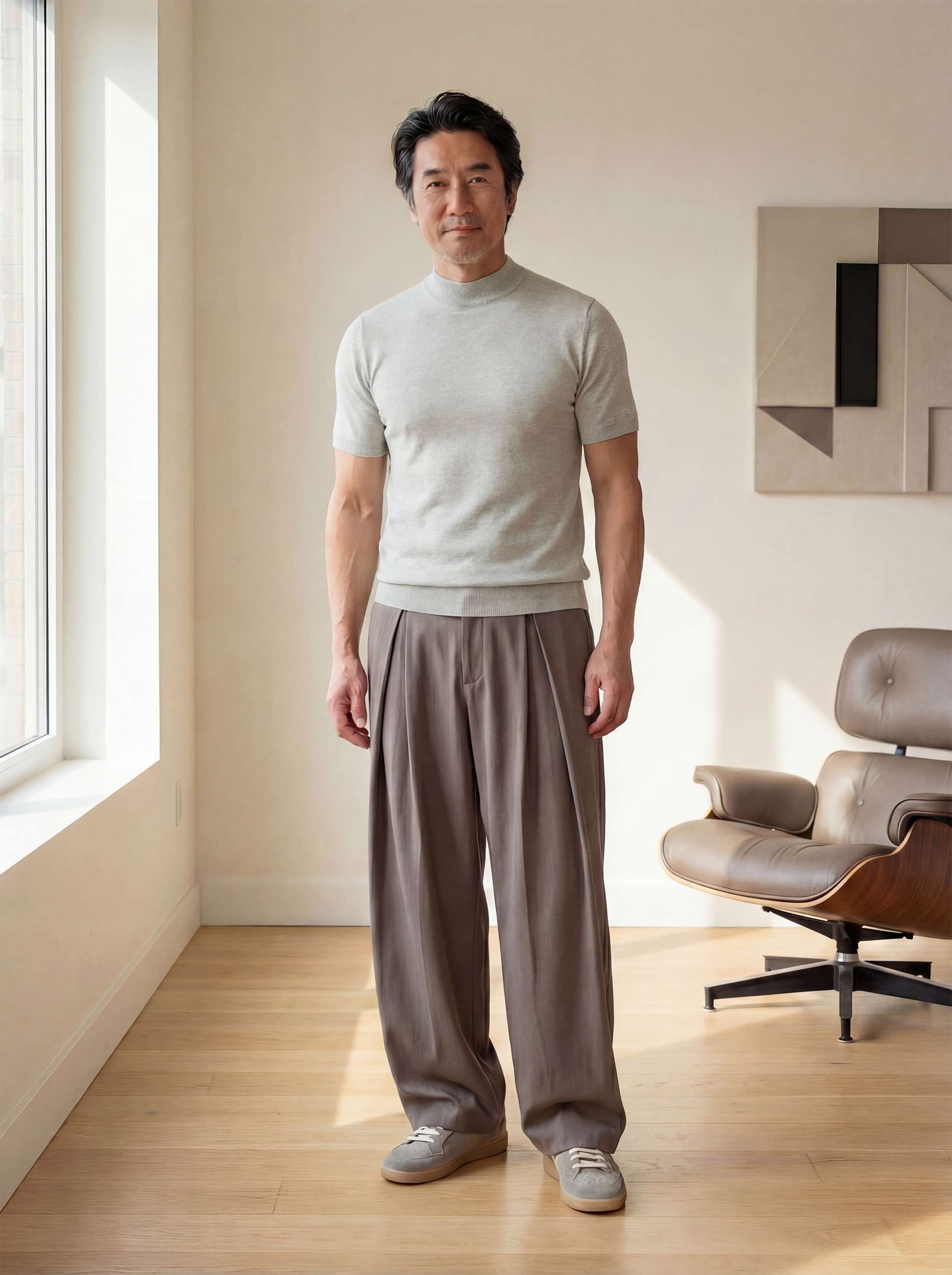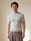 T-SHIRT CON GIROCOLLO ALTO IN MAGLIA GRIGIA