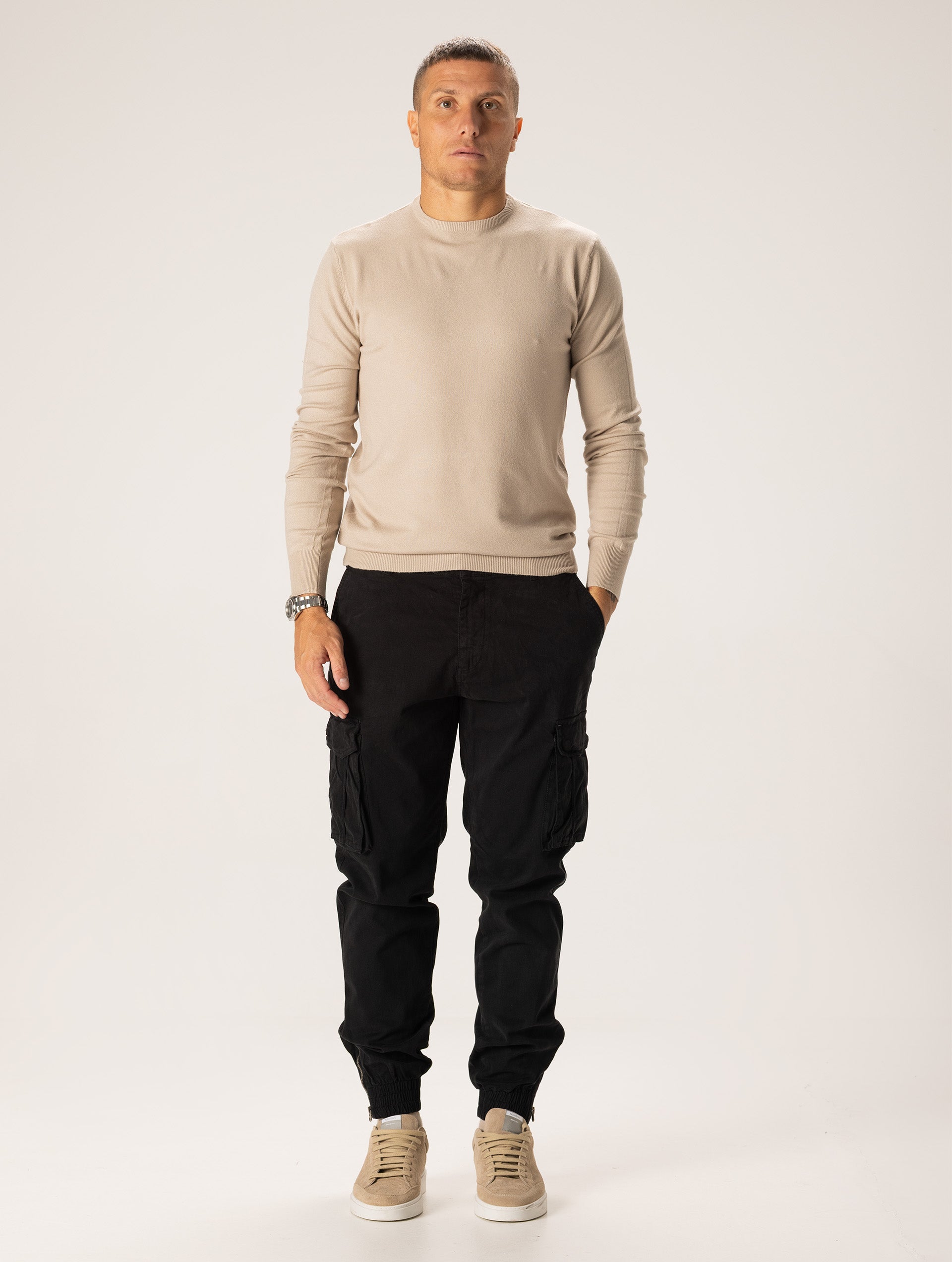 - Il modello indossa la taglia US/UK 36W - IT50 ed è alto 185 cm