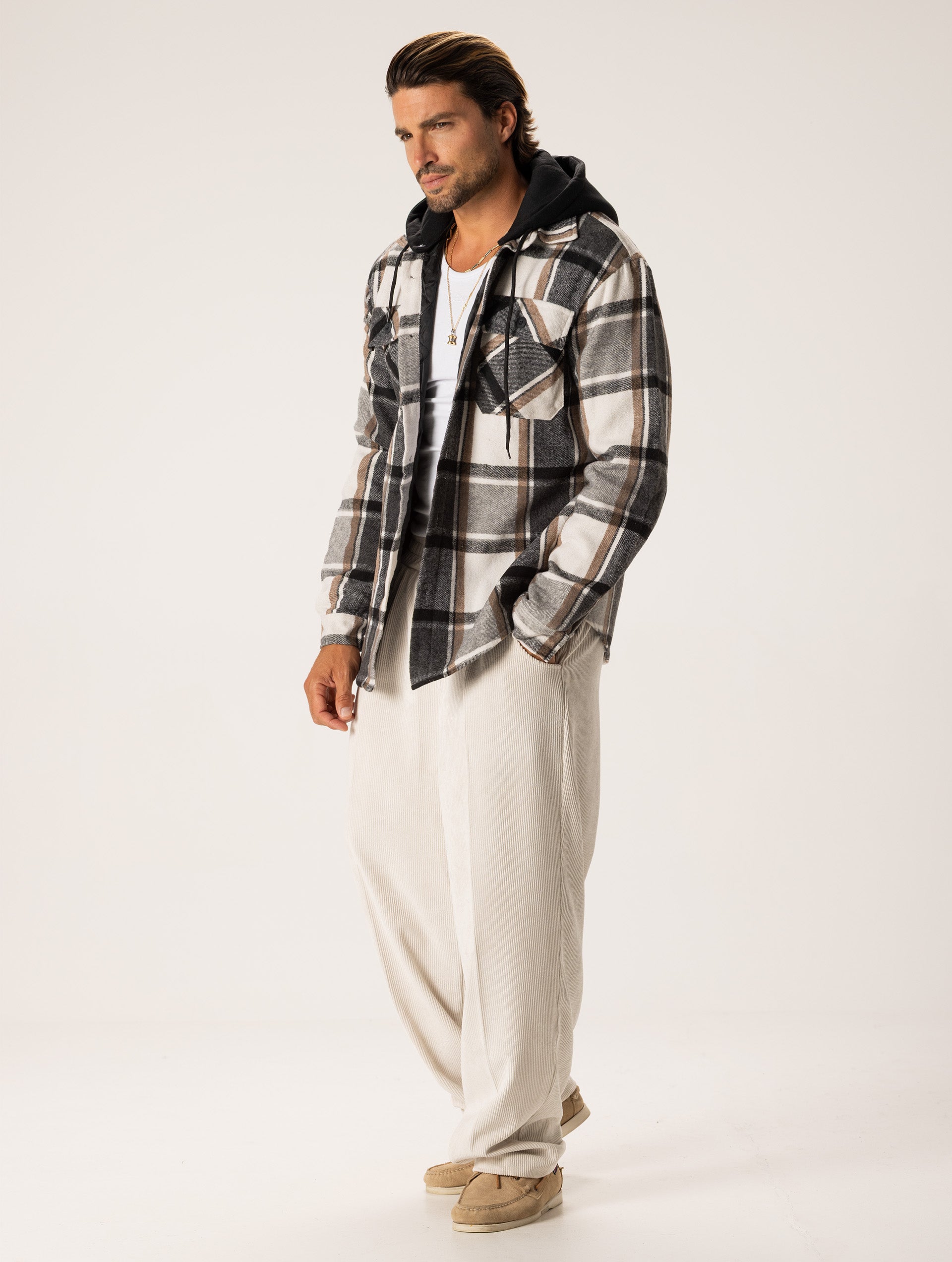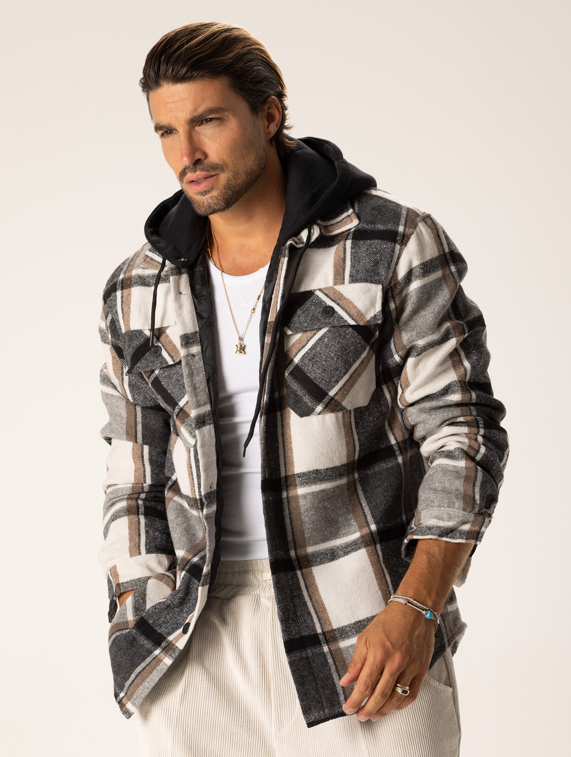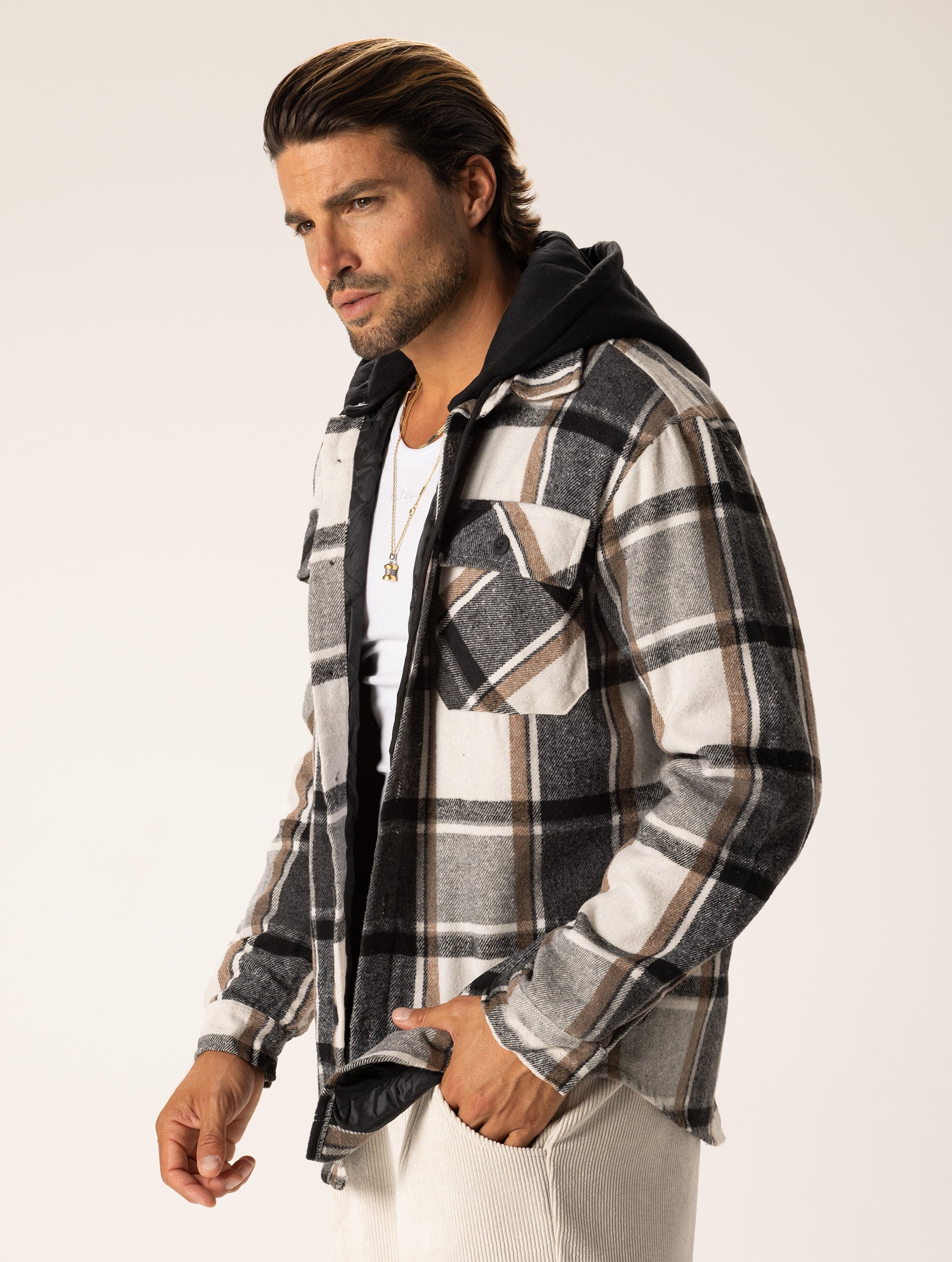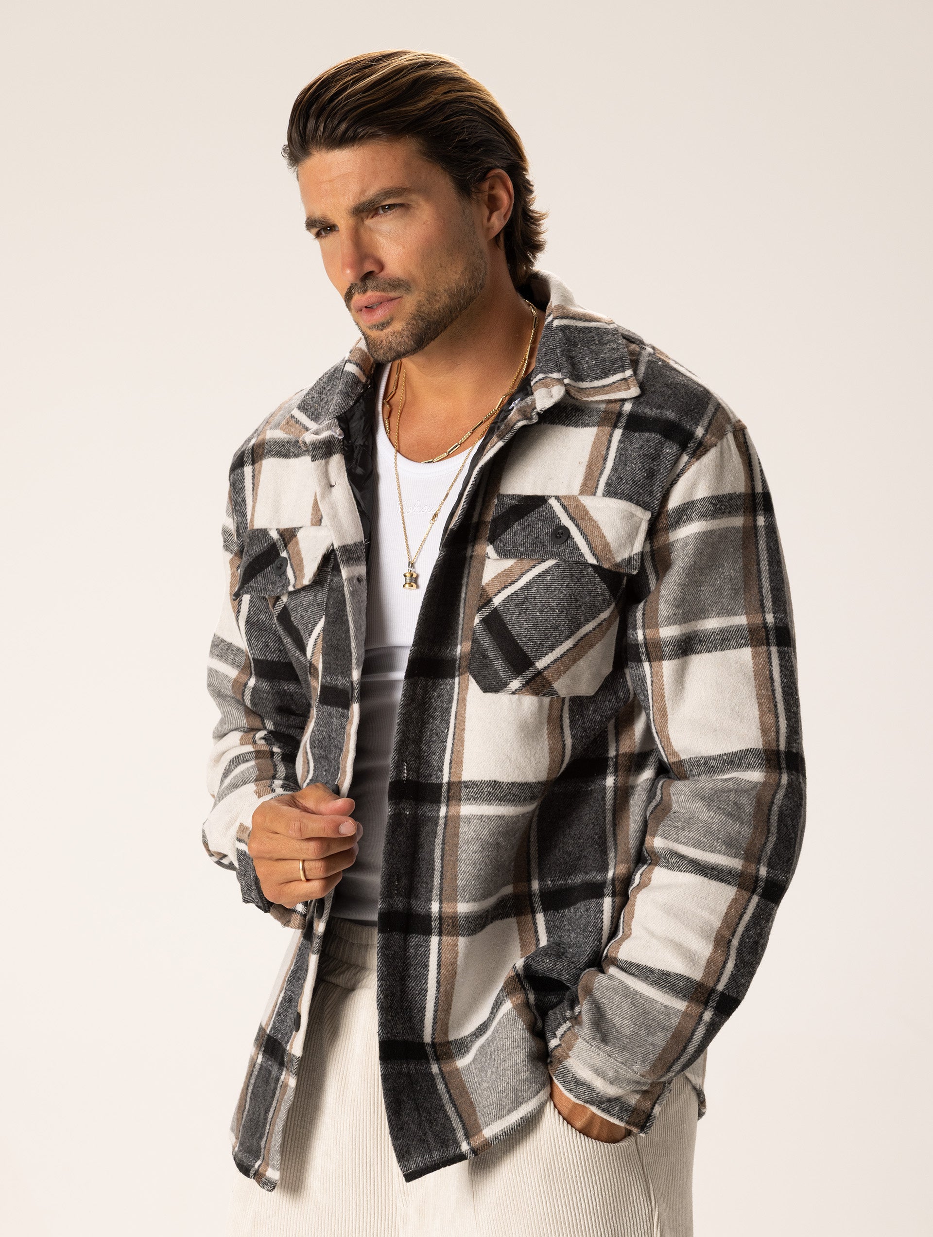 NOAH CHECKED JACKET IN GREY AND CREAM