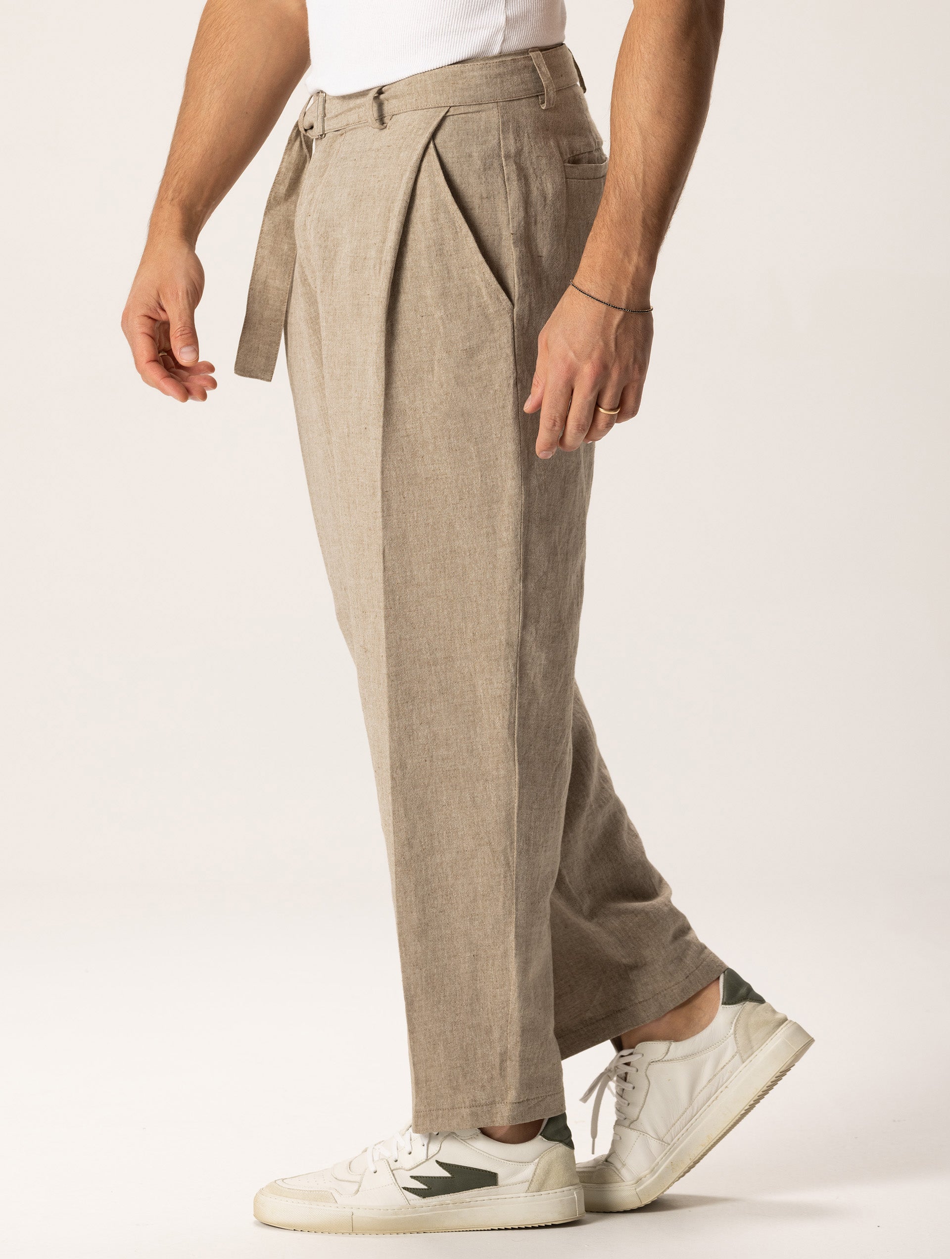 SOSUKE LINEN CASUAL PANTS IN BEIGE