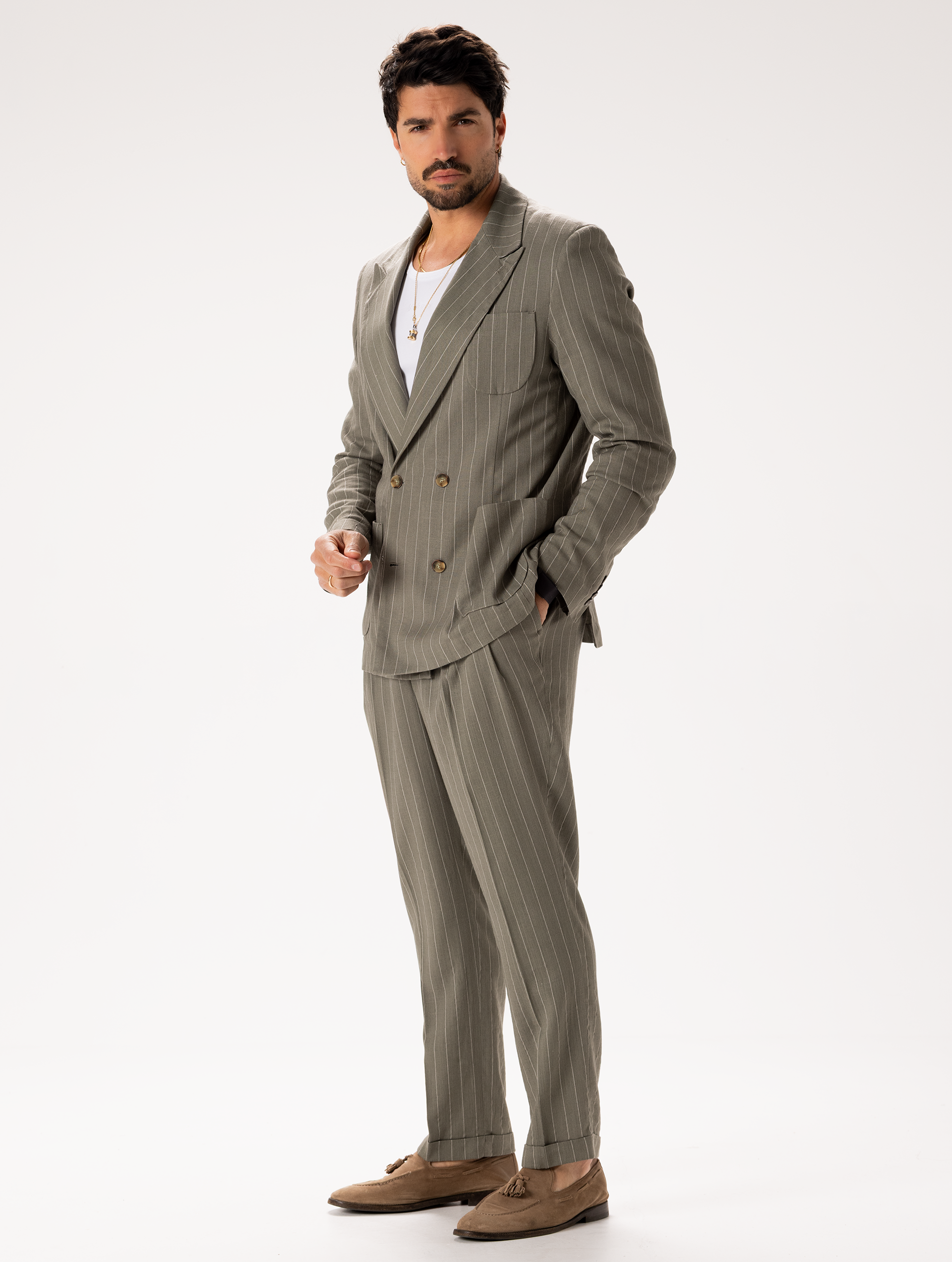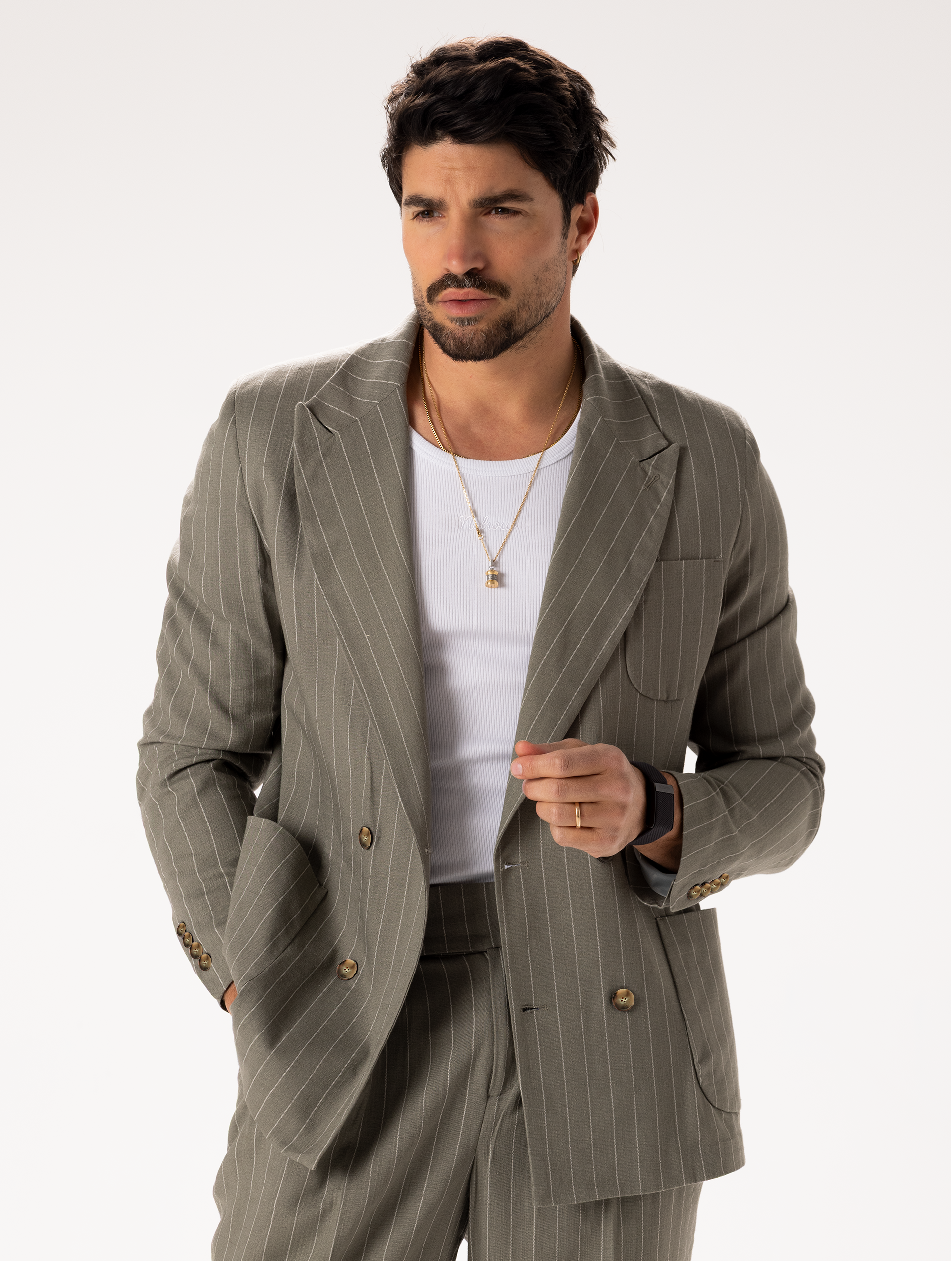 LINEN PINSTRIPED BLAZER IN SAGE